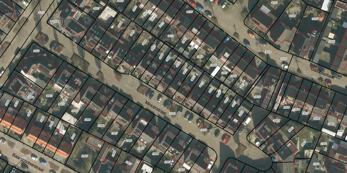 Het perceel waarop Mincerstraat 19 staat heeft een oppervlakte van 130 m². Dit is een middelgroot perceel. De perceeloppervlakte wordt geregistreerd door het Kadaster. Gedetailleerde informatie over de maten van dit perceel kunt u vinden in het rapport Kadastrale kaart met maatvoering van Mincerstraat 19.