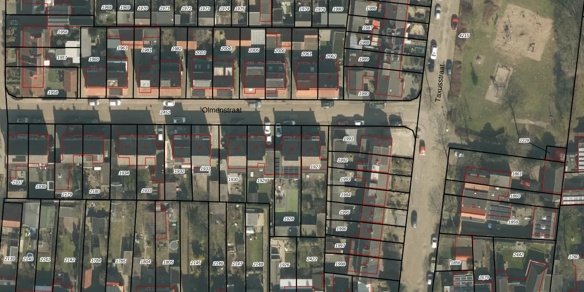 Gebruik de zoekbalk of klik op een perceel voor informatie over de adressen binnen dit perceel.