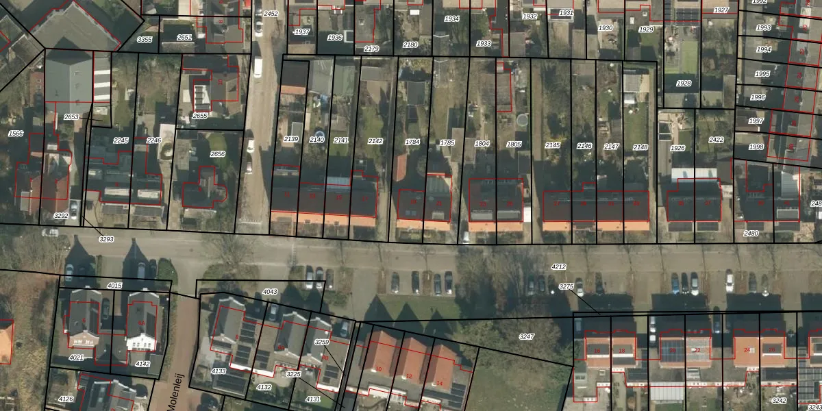 Gebruik de zoekbalk of klik op een perceel voor informatie over de adressen binnen dit perceel.