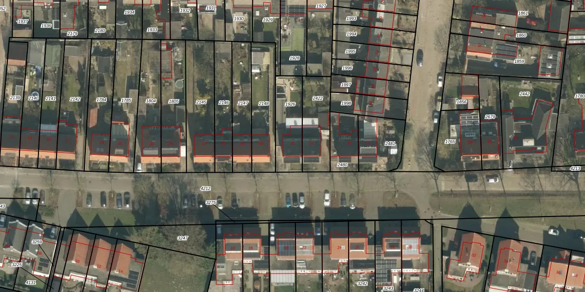 Gebruik de zoekbalk of klik op een perceel voor informatie over de adressen binnen dit perceel.