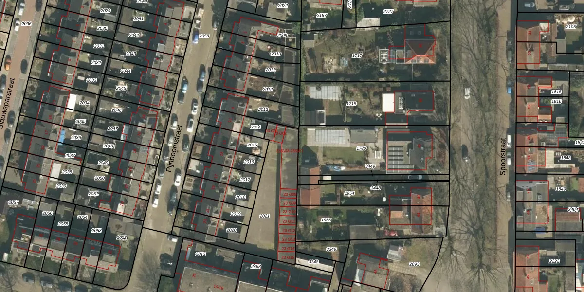 Pijnboomstraat 23-G03 is gelegen op kadastraal perceel OTH01K2021. Deze kadastrale aanduiding is uniek en wordt gebruikt door het Kadaster om eigendomsrechten en andere zakelijke rechten vast te leggen. Het perceel maakt onderdeel uit van de kadastrale gemeente Oosterhout.