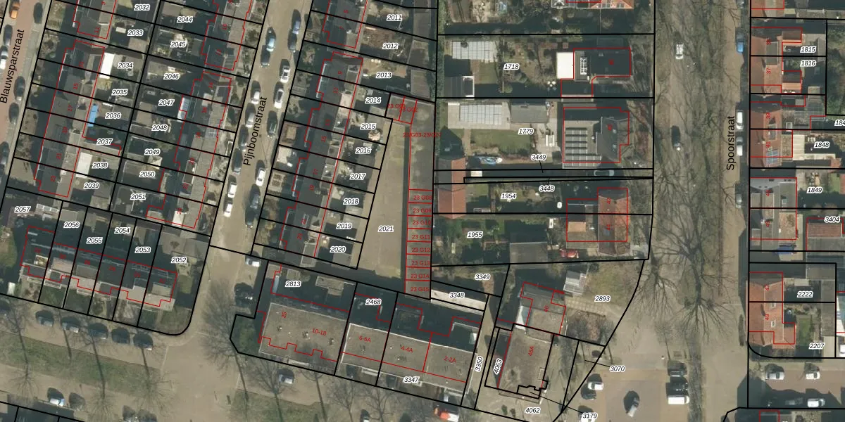 Pijnboomstraat 23-G09 is gelegen op kadastraal perceel OTH01K2021. Deze kadastrale aanduiding is uniek en wordt gebruikt door het Kadaster om eigendomsrechten en andere zakelijke rechten vast te leggen. Het perceel maakt onderdeel uit van de kadastrale gemeente Oosterhout.