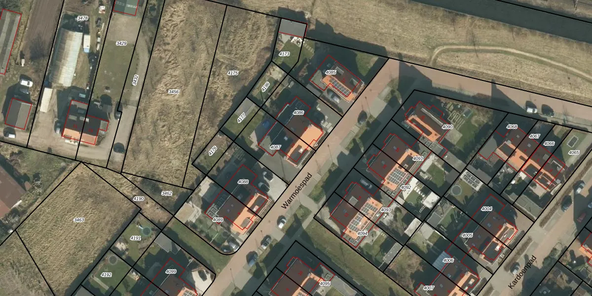 Gebruik de zoekbalk of klik op een perceel voor informatie over de adressen binnen dit perceel.