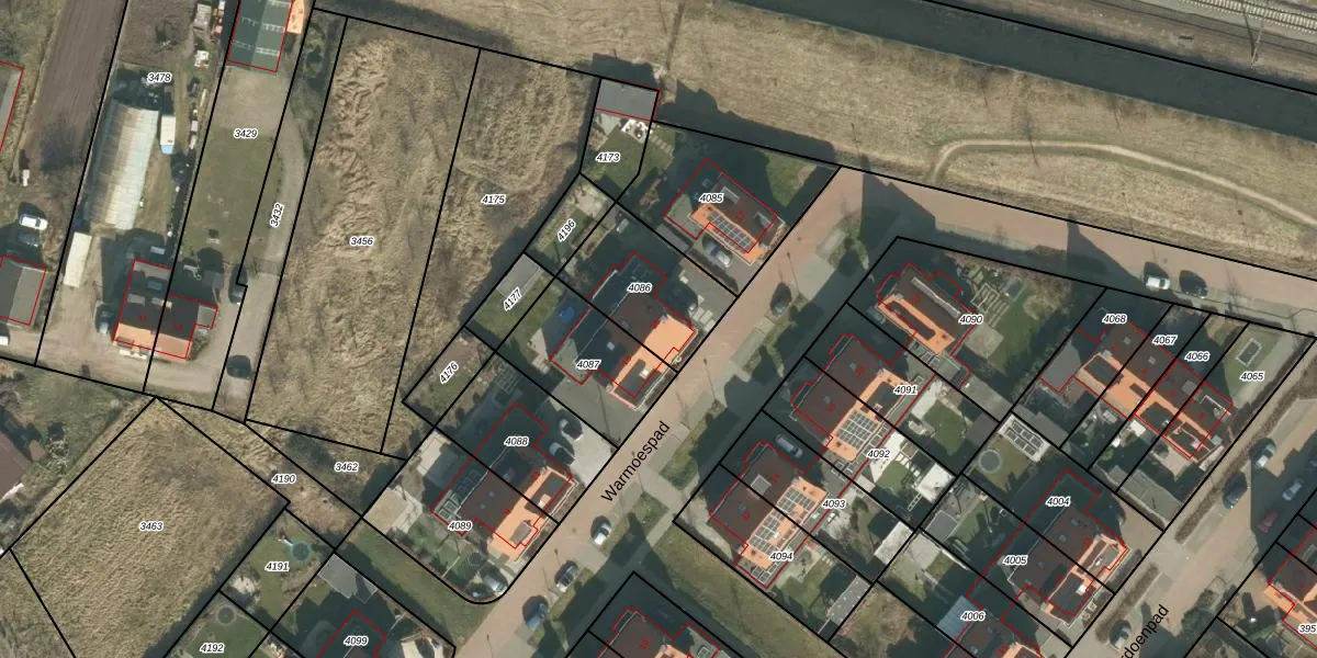 Het perceel waarop Warmoespad 15 staat heeft een oppervlakte van 346 m². Dit is een groot perceel. De perceeloppervlakte wordt geregistreerd door het Kadaster. Gedetailleerde informatie over de maten van dit perceel kunt u vinden in het rapport Kadastrale kaart met maatvoering van Warmoespad 15.