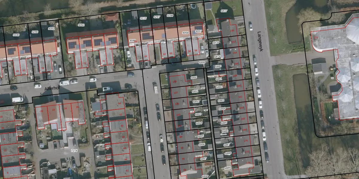 Het perceel waarop Alferhof 107 staat heeft een oppervlakte van 154 m². Dit is een middelgroot perceel. De perceeloppervlakte wordt geregistreerd door het Kadaster. Gedetailleerde informatie over de maten van dit perceel kunt u vinden in het rapport Kadastrale kaart met maatvoering van Alferhof 107.