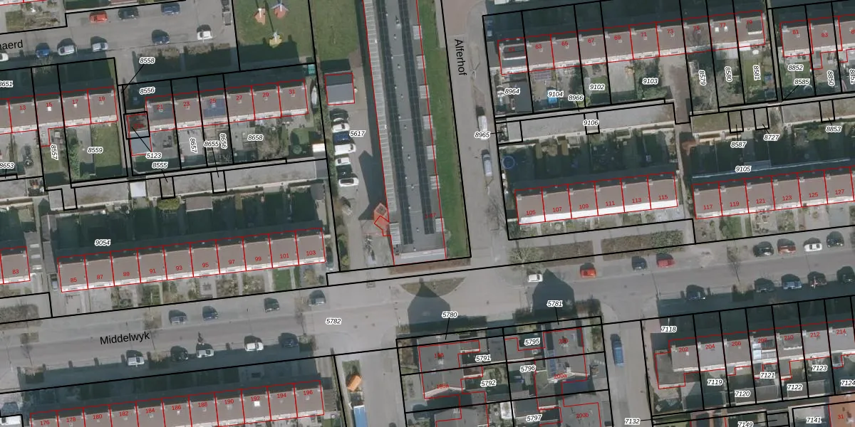 Het perceel waarop Alferhof 3 staat heeft een oppervlakte van 2109 m². Dit is een zeer groot perceel. De perceeloppervlakte wordt geregistreerd door het Kadaster. Gedetailleerde informatie over de maten van dit perceel kunt u vinden in het rapport Kadastrale kaart met maatvoering van Alferhof 3.