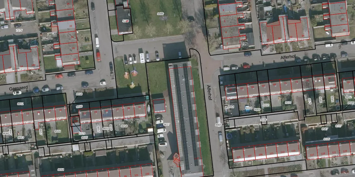 Het perceel waarop Alferhof 43 staat heeft een oppervlakte van 2109 m². Dit is een zeer groot perceel. De perceeloppervlakte wordt geregistreerd door het Kadaster. Gedetailleerde informatie over de maten van dit perceel kunt u vinden in het rapport Kadastrale kaart met maatvoering van Alferhof 43.