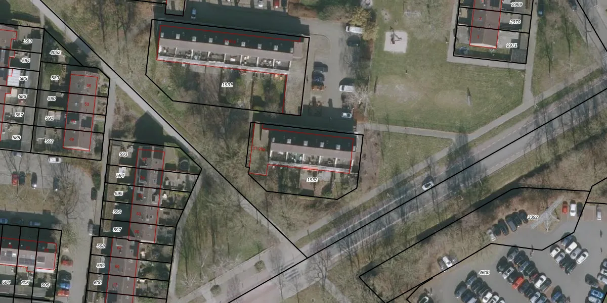 Het adres is gelegen op perceel 1932 in de sectie D en de kadastrale gemeente Drachten. De kadastrale aanduiding is aldus DTN02-D-1932. De gemiddelde perceelgrootte in Drachten is 1805,26 m². Dit perceel is kleiner: de perceeloppervlakte bedraagt 782 m². Het grootste perceel in de kadastrale gemeente is 42,8 ha. Het kleinste perceel heeft een oppervlakte van 0 m². Op het perceel zijn 10 adressen aanwezig. In de Basisregistratie Kadaster (BRK) werden de grenzen van het perceel geregistreerd op 15-01-1998.