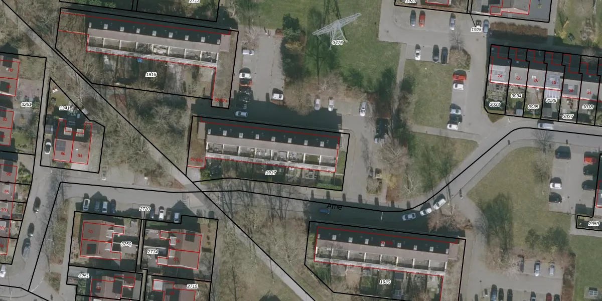 Het perceel waarop Ame 54-a staat heeft een oppervlakte van 1015 m². Dit is een zeer groot perceel. De perceeloppervlakte wordt geregistreerd door het Kadaster. Gedetailleerde informatie over de maten van dit perceel kunt u vinden in het rapport Kadastrale kaart met maatvoering van Ame 54-a.