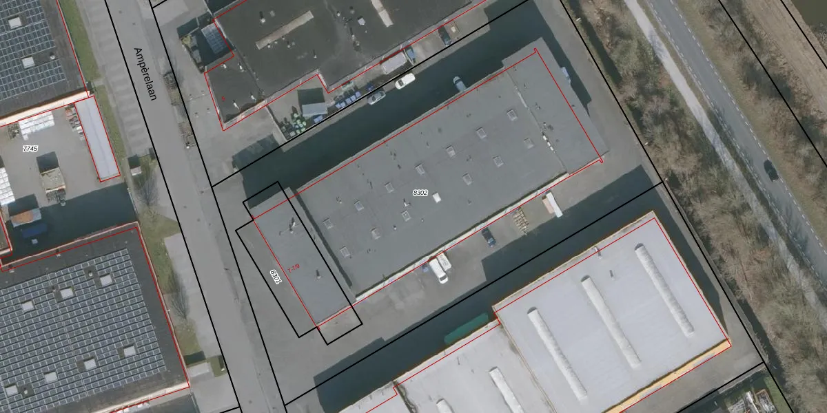 Het perceel waarop Ampèrelaan 7-24 staat heeft een oppervlakte van 4963 m². Dit is een zeer groot perceel. De perceeloppervlakte wordt geregistreerd door het Kadaster. Gedetailleerde informatie over de maten van dit perceel kunt u vinden in het rapport Kadastrale kaart met maatvoering van Ampèrelaan 7-24.