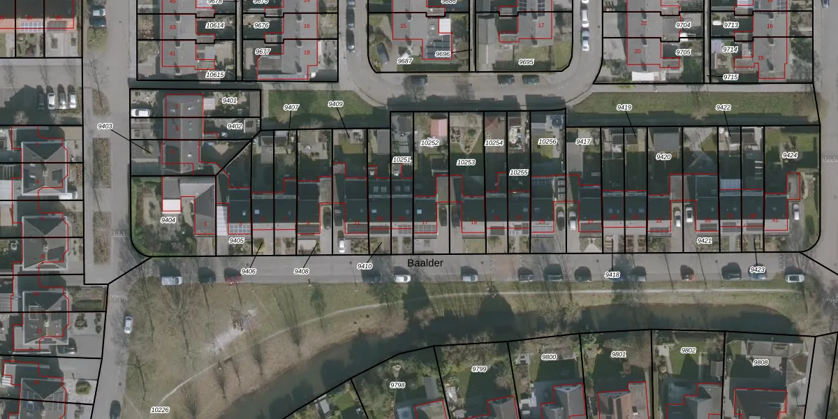 Het perceel waarop Baalder 17 staat heeft een oppervlakte van 290 m². Dit is een middelgroot perceel. De perceeloppervlakte wordt geregistreerd door het Kadaster. Gedetailleerde informatie over de maten van dit perceel kunt u vinden in het rapport Kadastrale kaart met maatvoering van Baalder 17.