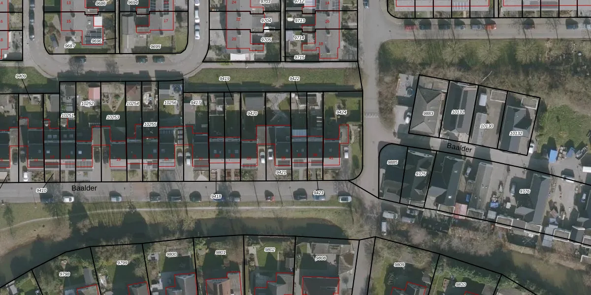 Het perceel waarop Baalder 37 staat heeft een oppervlakte van 166 m². Dit is een middelgroot perceel. De perceeloppervlakte wordt geregistreerd door het Kadaster. Gedetailleerde informatie over de maten van dit perceel kunt u vinden in het rapport Kadastrale kaart met maatvoering van Baalder 37.