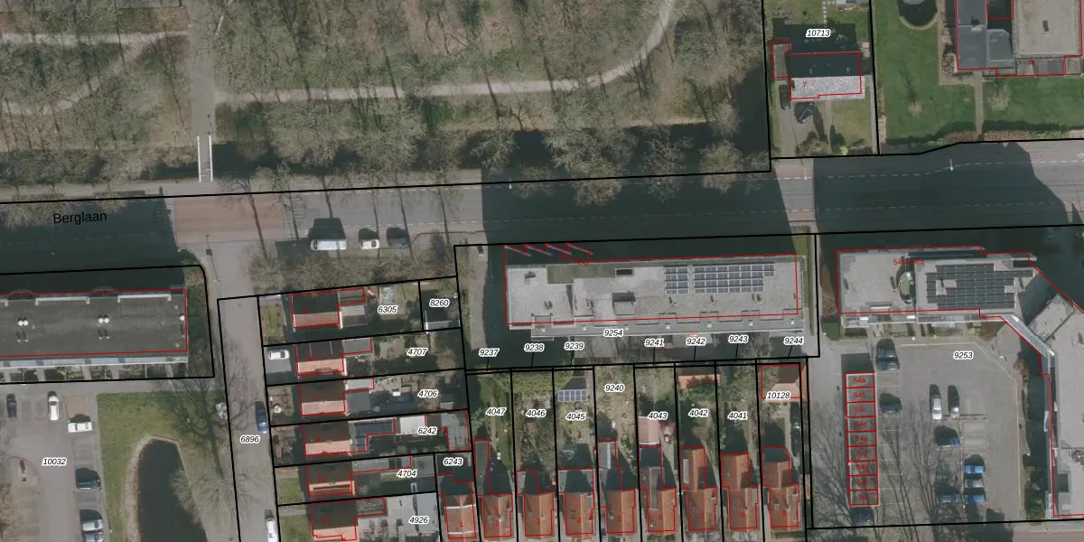 Het perceel waarop Berglaan 52-2 staat heeft een oppervlakte van 1508 m². Dit is een zeer groot perceel. De perceeloppervlakte wordt geregistreerd door het Kadaster. Gedetailleerde informatie over de maten van dit perceel kunt u vinden in het rapport Kadastrale kaart met maatvoering van Berglaan 52-2.