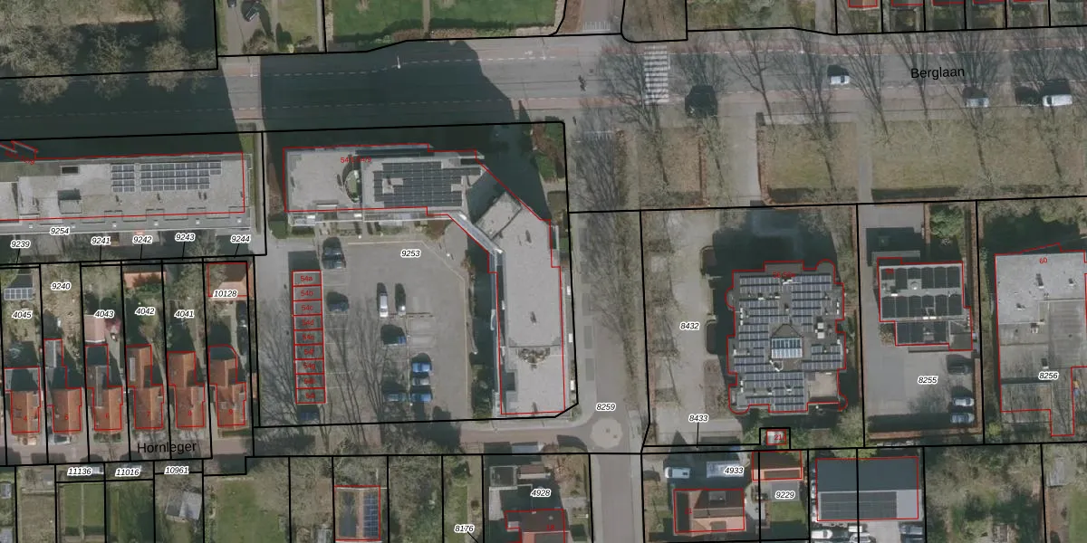 Het perceel waarop Berglaan 54-5 staat heeft een oppervlakte van 3108 m². Dit is een zeer groot perceel. De perceeloppervlakte wordt geregistreerd door het Kadaster. Gedetailleerde informatie over de maten van dit perceel kunt u vinden in het rapport Kadastrale kaart met maatvoering van Berglaan 54-5.