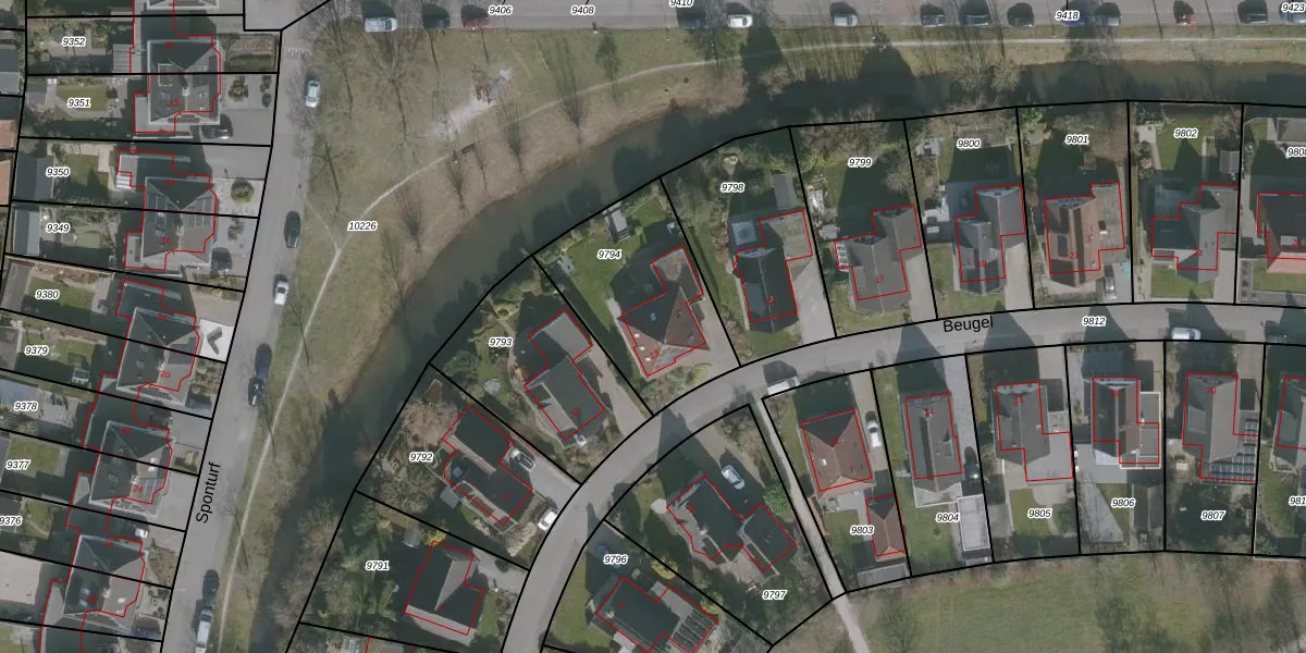 Het perceel waarop Beugel 13 staat heeft een oppervlakte van 593 m². Dit is een groot perceel. De perceeloppervlakte wordt geregistreerd door het Kadaster. Gedetailleerde informatie over de maten van dit perceel kunt u vinden in het rapport Kadastrale kaart met maatvoering van Beugel 13.