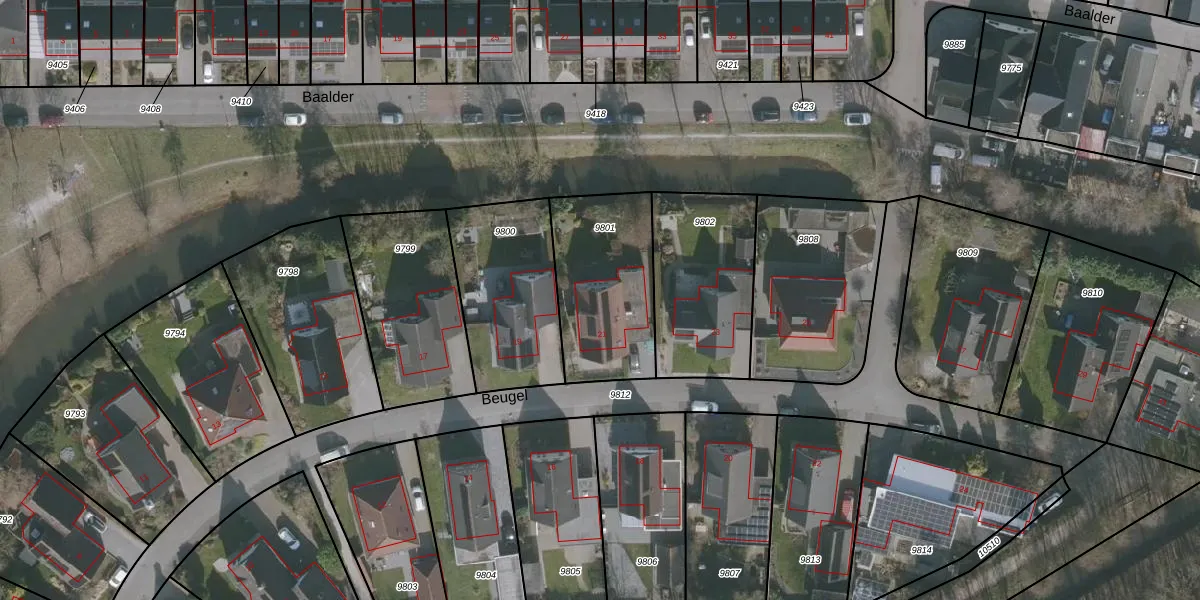 Het perceel waarop Beugel 21 staat heeft een oppervlakte van 500 m². Dit is een groot perceel. De perceeloppervlakte wordt geregistreerd door het Kadaster. Gedetailleerde informatie over de maten van dit perceel kunt u vinden in het rapport Kadastrale kaart met maatvoering van Beugel 21.