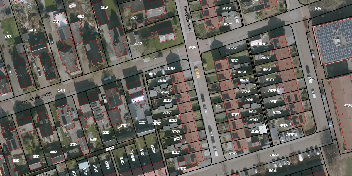 Gebruik de zoekbalk of klik op een perceel voor informatie over de adressen binnen dit perceel.