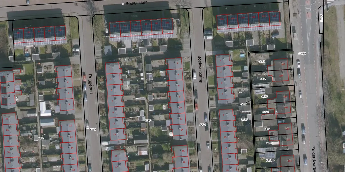 Het perceel waarop Boekweitkamp 6 staat heeft een oppervlakte van 7382 m². Dit is een zeer groot perceel. De perceeloppervlakte wordt geregistreerd door het Kadaster. Gedetailleerde informatie over de maten van dit perceel kunt u vinden in het rapport Kadastrale kaart met maatvoering van Boekweitkamp 6.