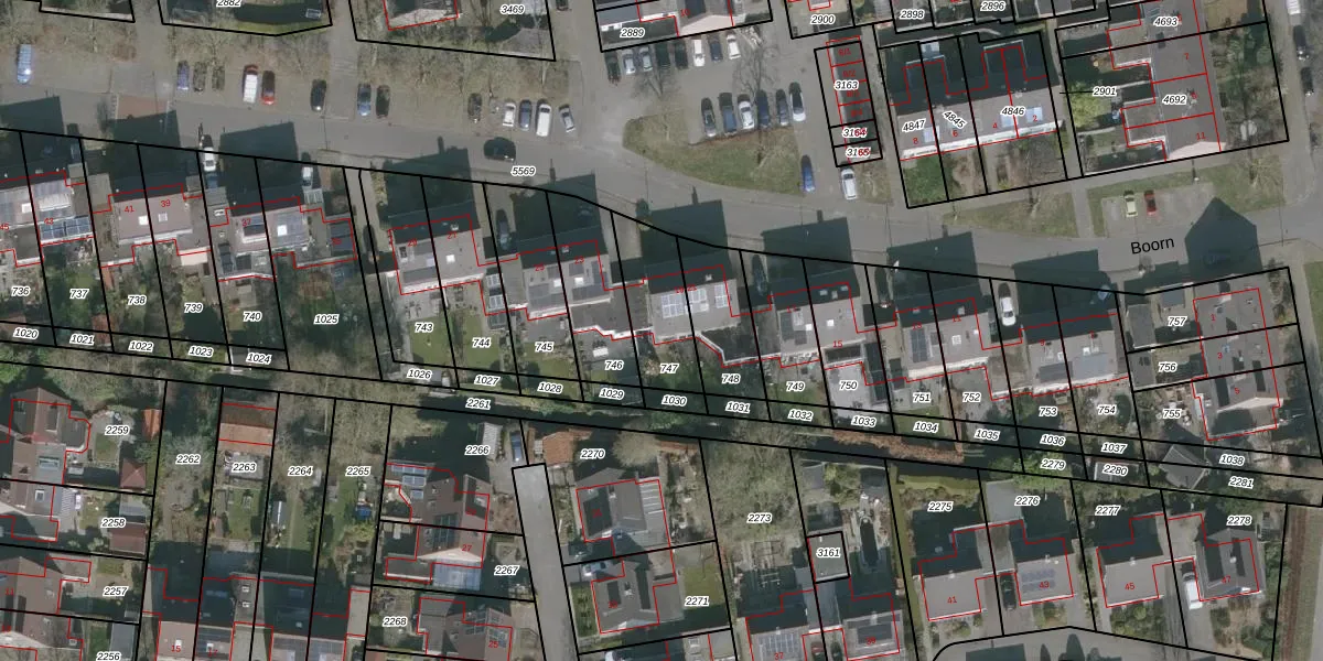 Het perceel waarop Boorn 21 staat heeft een oppervlakte van 233 m². Dit is een middelgroot perceel. De perceeloppervlakte wordt geregistreerd door het Kadaster. Gedetailleerde informatie over de maten van dit perceel kunt u vinden in het rapport Kadastrale kaart met maatvoering van Boorn 21.