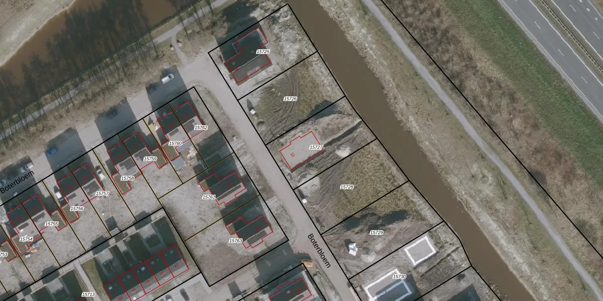 Het perceel waarop Boterbloem 12 staat heeft een oppervlakte van 557 m². Dit is een groot perceel. De perceeloppervlakte wordt geregistreerd door het Kadaster. Gedetailleerde informatie over de maten van dit perceel kunt u vinden in het rapport Kadastrale kaart met maatvoering van Boterbloem 12.
