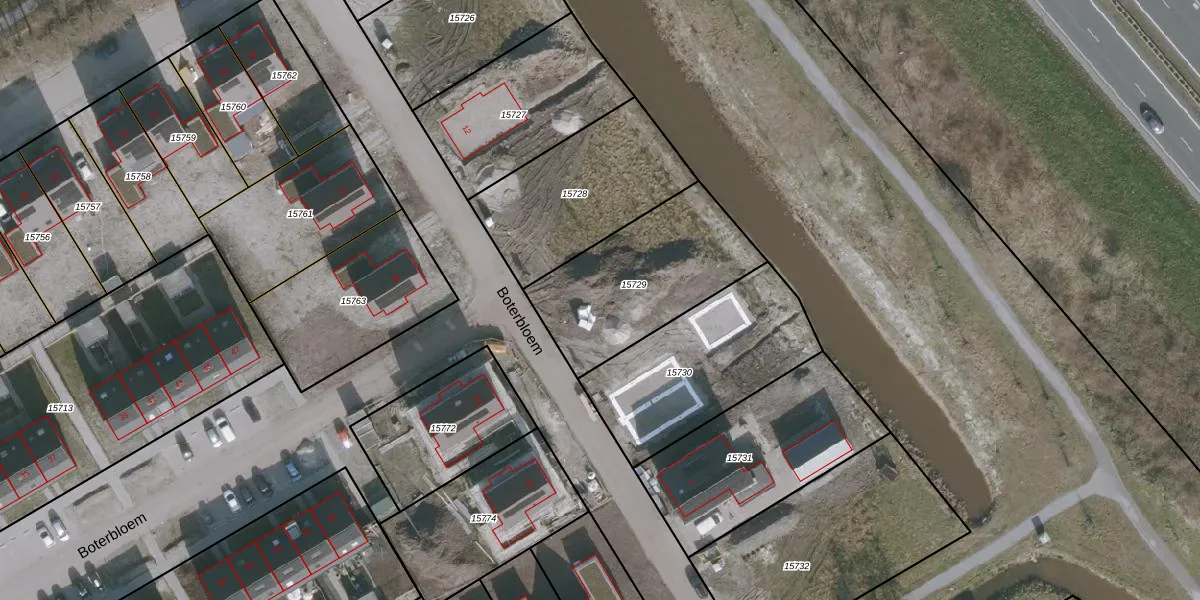 Het perceel waarop Boterbloem 8 staat heeft een oppervlakte van 627 m². Dit is een groot perceel. De perceeloppervlakte wordt geregistreerd door het Kadaster. Gedetailleerde informatie over de maten van dit perceel kunt u vinden in het rapport Kadastrale kaart met maatvoering van Boterbloem 8.