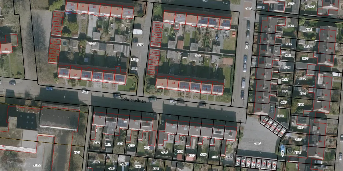 Het perceel waarop Bouriciuslaan 10 staat heeft een oppervlakte van 2832 m². Dit is een zeer groot perceel. De perceeloppervlakte wordt geregistreerd door het Kadaster. Gedetailleerde informatie over de maten van dit perceel kunt u vinden in het rapport Kadastrale kaart met maatvoering van Bouriciuslaan 10.
