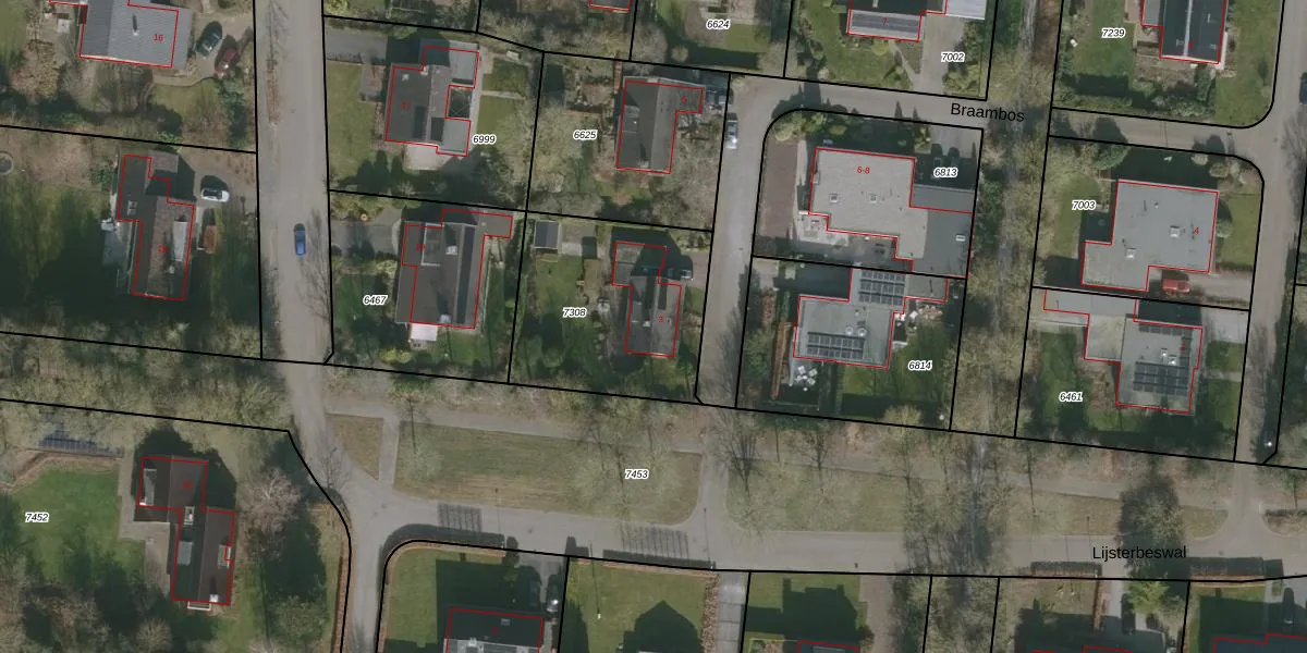 Het perceel waarop Braambos 3 staat heeft een oppervlakte van 763 m². Dit is een groot perceel. De perceeloppervlakte wordt geregistreerd door het Kadaster. Gedetailleerde informatie over de maten van dit perceel kunt u vinden in het rapport Kadastrale kaart met maatvoering van Braambos 3.