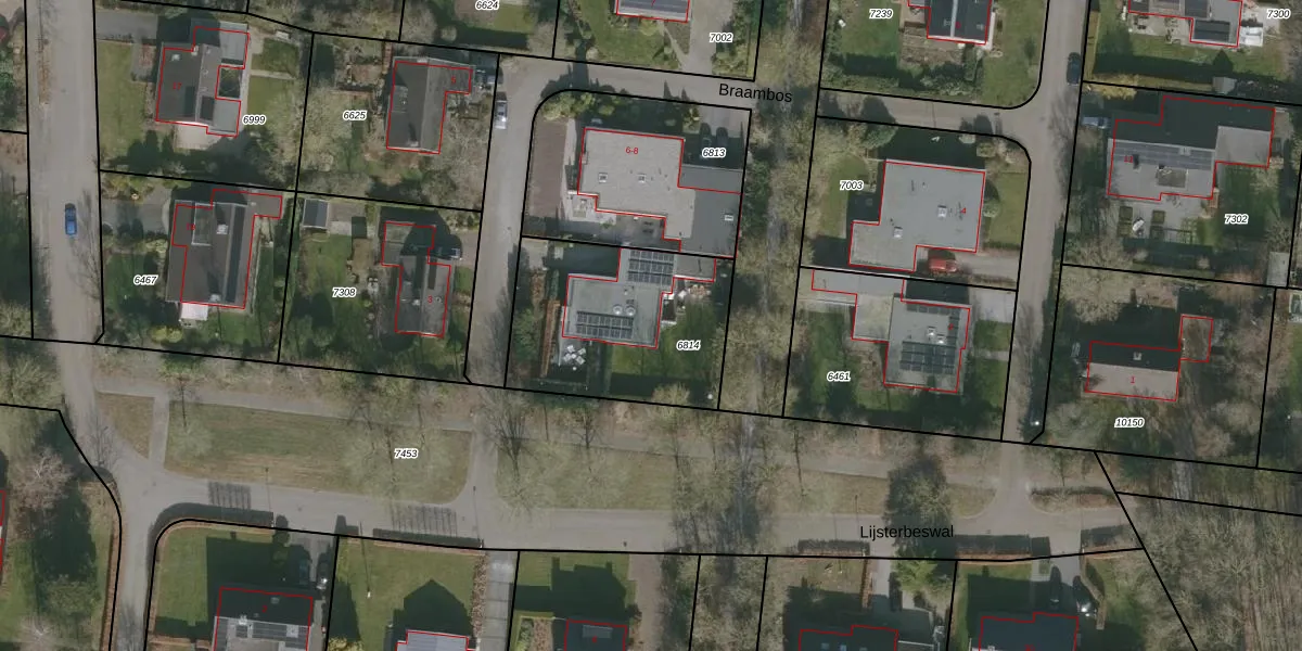 Het perceel waarop Braambos 8 staat heeft een oppervlakte van 772 m². Dit is een groot perceel. De perceeloppervlakte wordt geregistreerd door het Kadaster. Gedetailleerde informatie over de maten van dit perceel kunt u vinden in het rapport Kadastrale kaart met maatvoering van Braambos 8.