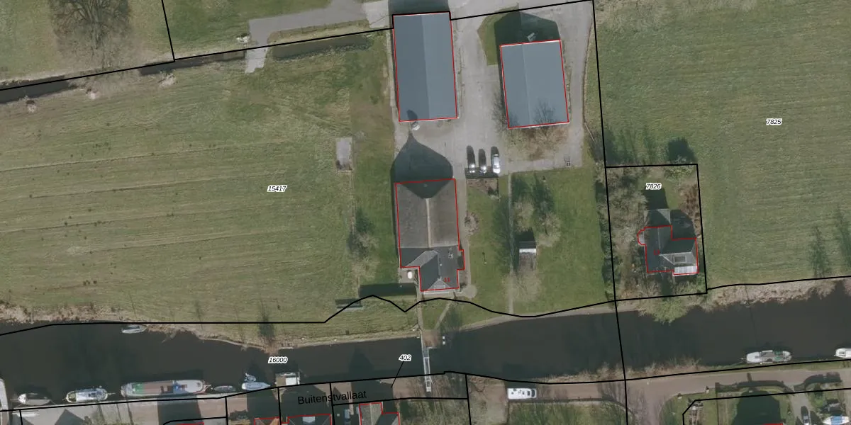 Het perceel waarop Buitenstvallaat 11 staat heeft een oppervlakte van 1,0 ha. Dit is een zeer groot perceel. De perceeloppervlakte wordt geregistreerd door het Kadaster. Gedetailleerde informatie over de maten van dit perceel kunt u vinden in het rapport Kadastrale kaart met maatvoering van Buitenstvallaat 11.