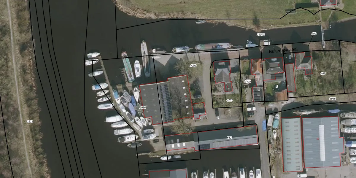 Het perceel waarop Buitenstvallaat 9 staat heeft een oppervlakte van 1867 m². Dit is een zeer groot perceel. De perceeloppervlakte wordt geregistreerd door het Kadaster. Gedetailleerde informatie over de maten van dit perceel kunt u vinden in het rapport Kadastrale kaart met maatvoering van Buitenstvallaat 9.
