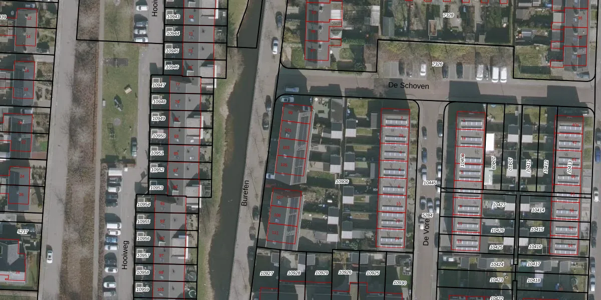 Het perceel waarop Burefen 103 staat heeft een oppervlakte van 2587 m². Dit is een zeer groot perceel. De perceeloppervlakte wordt geregistreerd door het Kadaster. Gedetailleerde informatie over de maten van dit perceel kunt u vinden in het rapport Kadastrale kaart met maatvoering van Burefen 103.