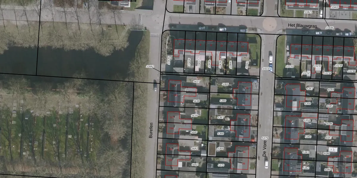 Gebruik de zoekbalk of klik op een perceel voor informatie over de adressen binnen dit perceel.