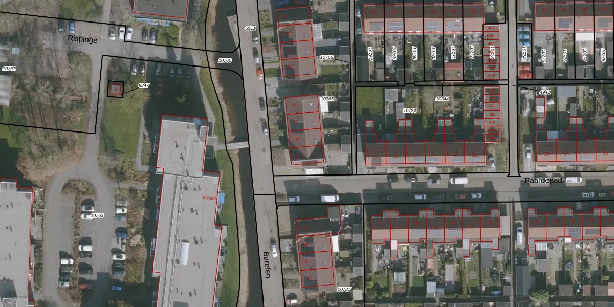Het perceel waarop Burefen 41 staat heeft een oppervlakte van 1640 m². Dit is een zeer groot perceel. De perceeloppervlakte wordt geregistreerd door het Kadaster. Gedetailleerde informatie over de maten van dit perceel kunt u vinden in het rapport Kadastrale kaart met maatvoering van Burefen 41.