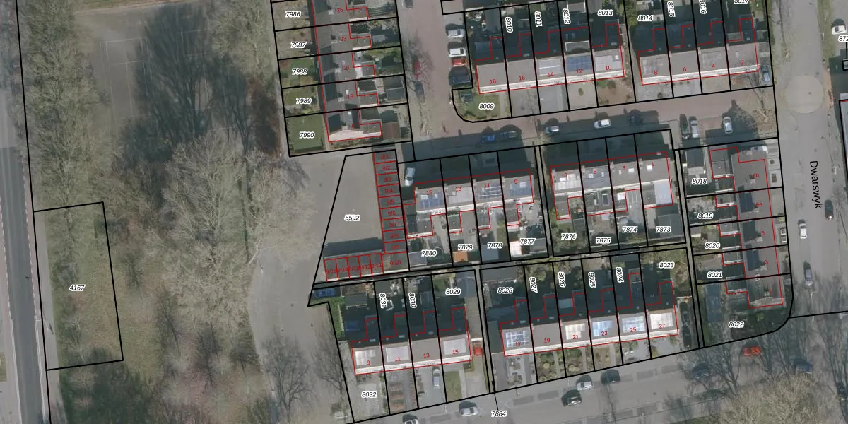 Het adres ligt op het perceel DTN02-B-7880, dat zich in de kadastrale gemeente Drachten bevindt. Het perceel is kleiner dan gemiddeld in Drachten. Het perceel is 264 m² groot, terwijl het gemiddelde ligt op 1805,26 m². Het grootste perceel in de kadastrale gemeente is 42,8 ha. Het kleinste perceel heeft een oppervlakte van 0 m². Op het perceel bevinden zich geen andere adressen. In de Basisregistratie Kadaster (BRK) werden de grenzen van het perceel geregistreerd op 05-08-2004.
