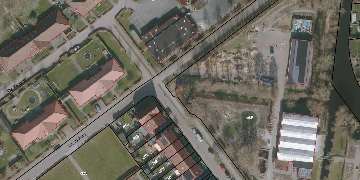 Het perceel waarop De Akkers 5-e staat heeft een oppervlakte van 1,2 ha. Dit is een zeer groot perceel. De perceeloppervlakte wordt geregistreerd door het Kadaster. Gedetailleerde informatie over de maten van dit perceel kunt u vinden in het rapport Kadastrale kaart met maatvoering van De Akkers 5-e.