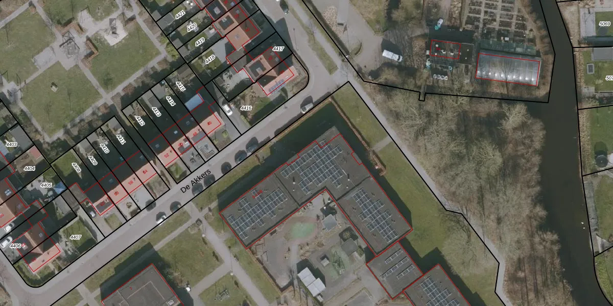 Het perceel waarop De Akkers 9 staat heeft een oppervlakte van 1,5 ha. Dit is een zeer groot perceel. De perceeloppervlakte wordt geregistreerd door het Kadaster. Gedetailleerde informatie over de maten van dit perceel kunt u vinden in het rapport Kadastrale kaart met maatvoering van De Akkers 9.