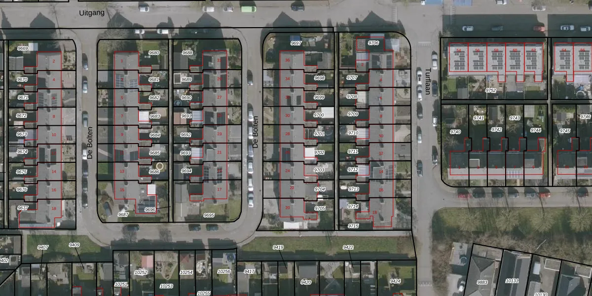 Gebruik de zoekbalk of klik op een perceel voor informatie over de adressen binnen dit perceel.