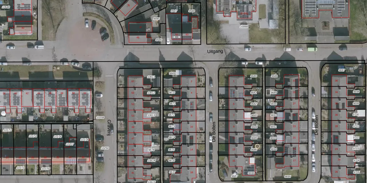 Gebruik de zoekbalk of klik op een perceel voor informatie over de adressen binnen dit perceel.