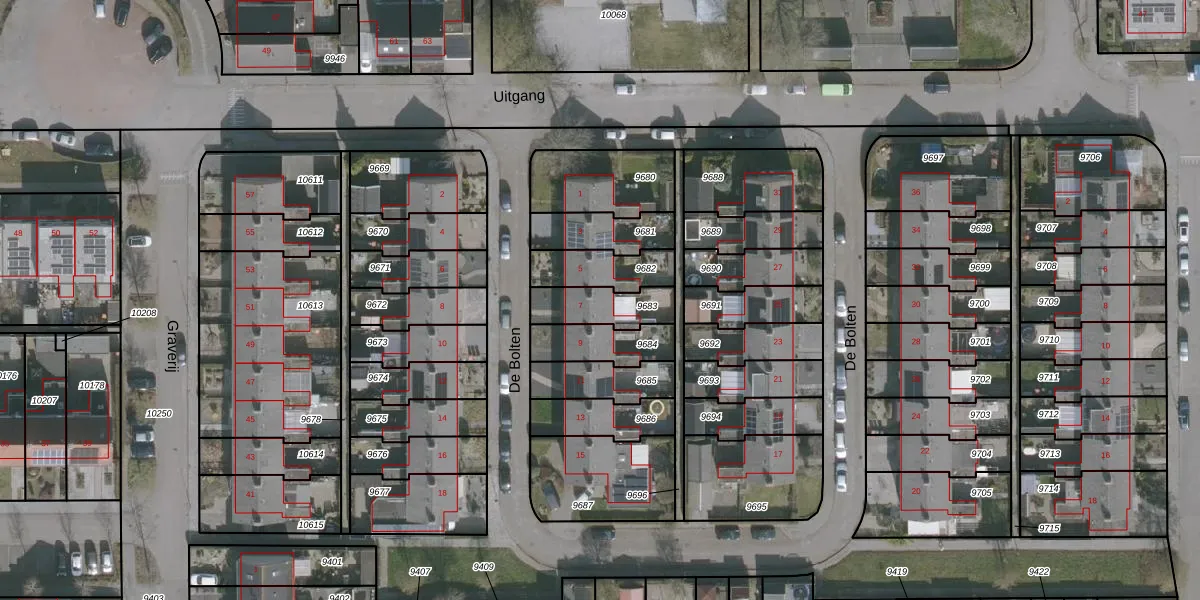 Gebruik de zoekbalk of klik op een perceel voor informatie over de adressen binnen dit perceel.