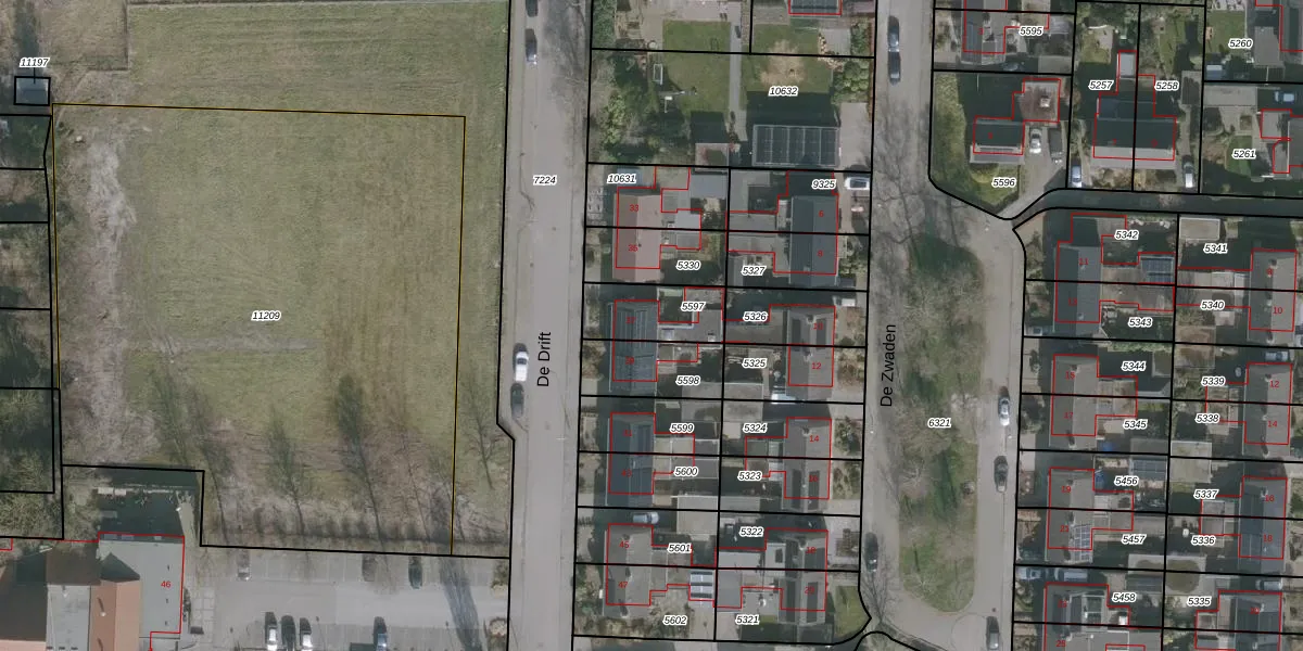 Het perceel waarop De Drift 37 staat heeft een oppervlakte van 189 m². Dit is een middelgroot perceel. De perceeloppervlakte wordt geregistreerd door het Kadaster. Gedetailleerde informatie over de maten van dit perceel kunt u vinden in het rapport Kadastrale kaart met maatvoering van De Drift 37.