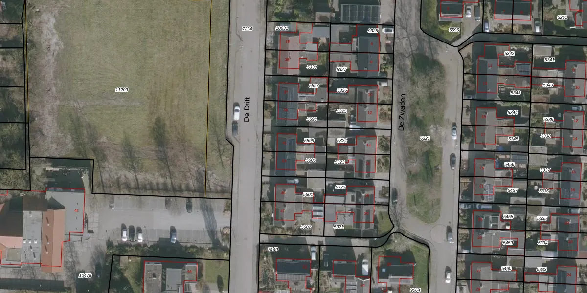 Het perceel waarop De Drift 41 staat heeft een oppervlakte van 188 m². Dit is een middelgroot perceel. De perceeloppervlakte wordt geregistreerd door het Kadaster. Gedetailleerde informatie over de maten van dit perceel kunt u vinden in het rapport Kadastrale kaart met maatvoering van De Drift 41.