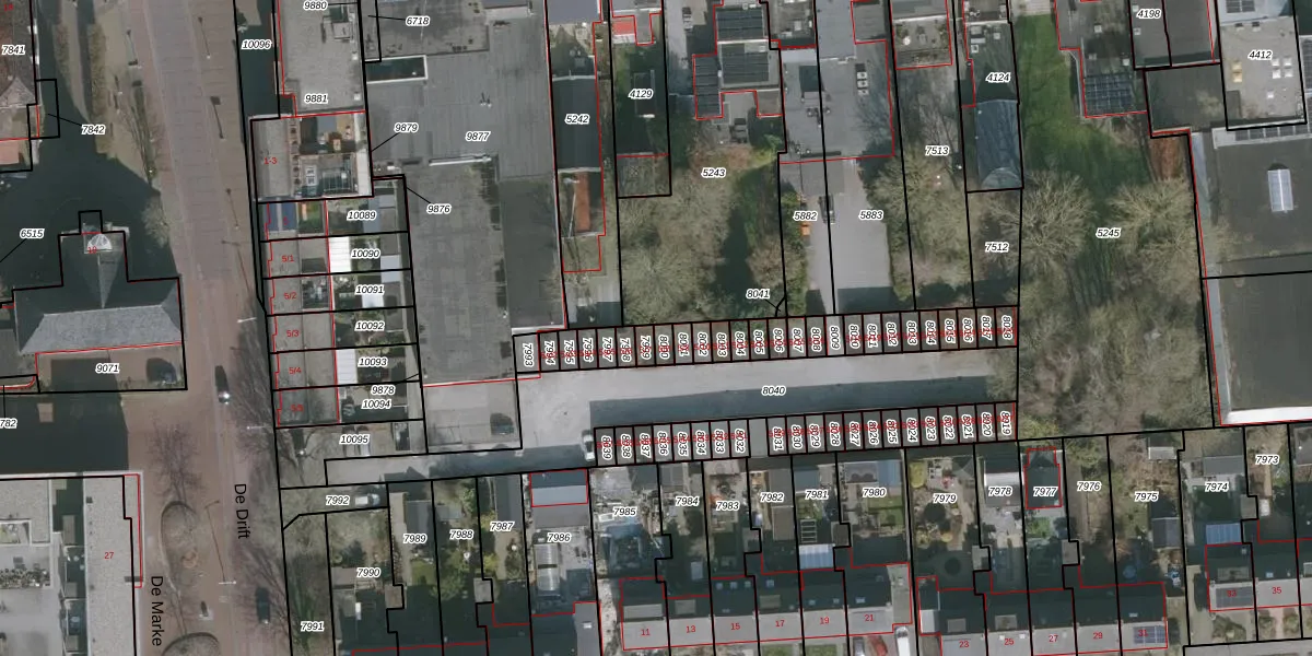 Het perceel waarop De Drift 5-8 staat heeft een oppervlakte van 18 m². Dit is een klein perceel. De perceeloppervlakte wordt geregistreerd door het Kadaster. Gedetailleerde informatie over de maten van dit perceel kunt u vinden in het rapport Kadastrale kaart met maatvoering van De Drift 5-8.