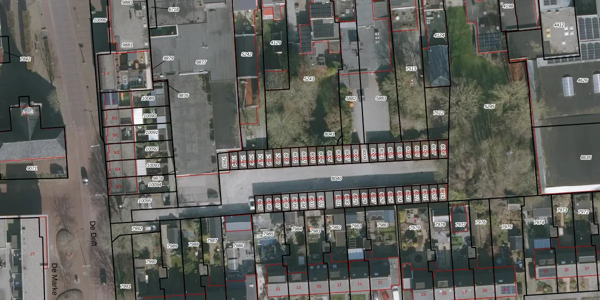 Gebruik de zoekbalk of klik op een perceel voor informatie over de adressen binnen dit perceel.