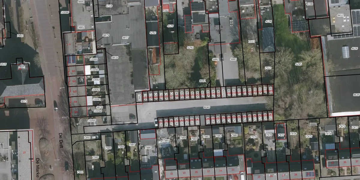 Het perceel waarop De Drift 5-9 staat heeft een oppervlakte van 18 m². Dit is een klein perceel. De perceeloppervlakte wordt geregistreerd door het Kadaster. Gedetailleerde informatie over de maten van dit perceel kunt u vinden in het rapport Kadastrale kaart met maatvoering van De Drift 5-9.