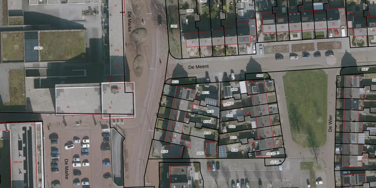 Het adres is gelegen op perceel 8111 in de sectie C en de kadastrale gemeente Drachten. De kadastrale aanduiding is aldus DTN02-C-8111. Het perceel is kleiner dan gemiddeld in Drachten. Het perceel is 283 m² groot, terwijl het gemiddelde ligt op 1805,26 m². Het grootste perceel in de kadastrale gemeente is 42,8 ha. Het kleinste perceel heeft een oppervlakte van 0 m². Dit is het enige adres dat aanwezig is op het perceel. De laatste wijziging in het de Basisregistratie Kadaster (BRK) was op 12-05-1999.