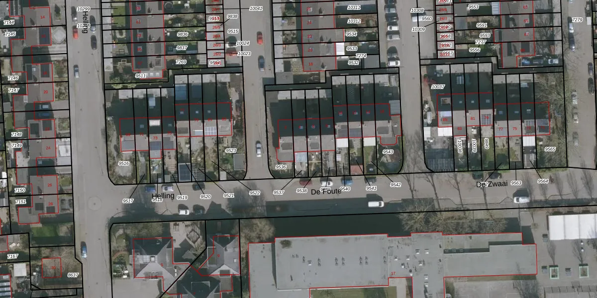 Gebruik de zoekbalk of klik op een perceel voor informatie over de adressen binnen dit perceel.