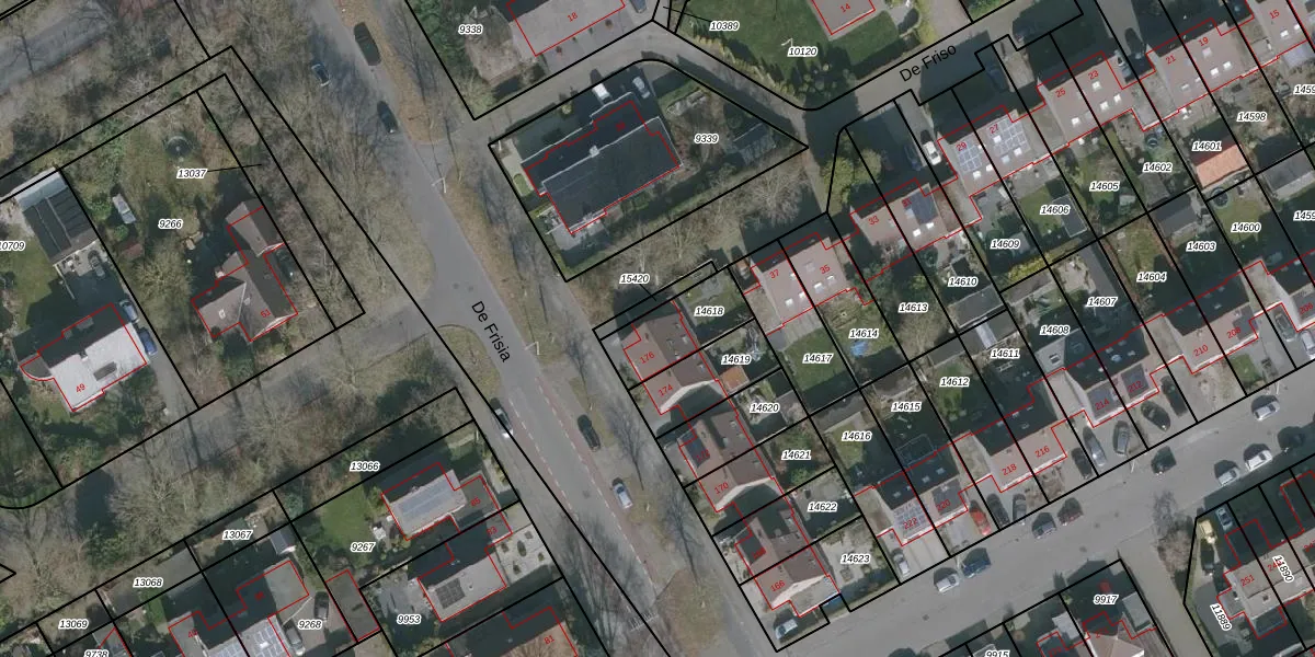 Het perceel waarop De Frisia 176 staat heeft een oppervlakte van 197 m². Dit is een middelgroot perceel. De perceeloppervlakte wordt geregistreerd door het Kadaster. Gedetailleerde informatie over de maten van dit perceel kunt u vinden in het rapport Kadastrale kaart met maatvoering van De Frisia 176.