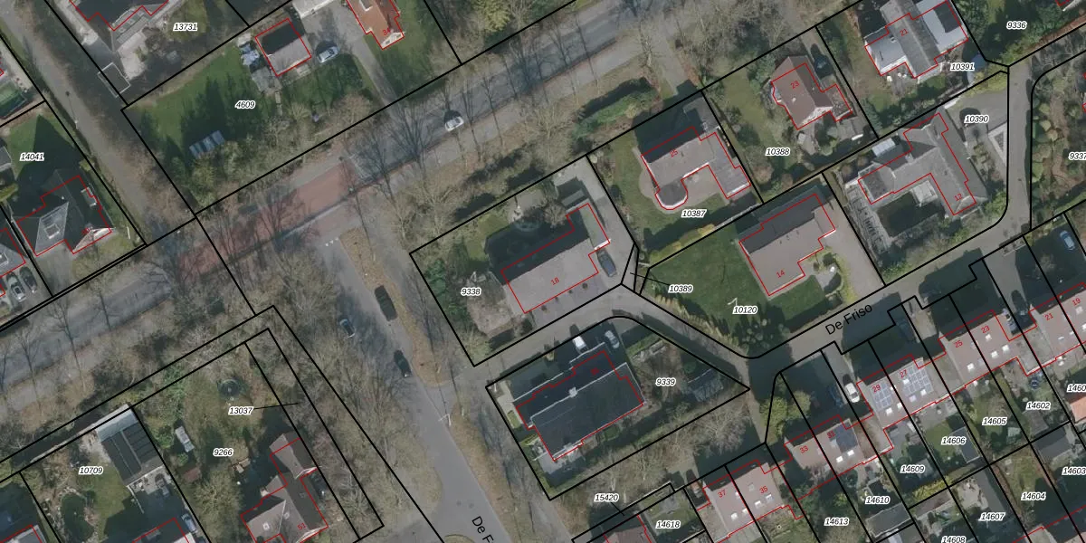 Het perceel waarop De Friso 18 staat heeft een oppervlakte van 870 m². Dit is een groot perceel. De perceeloppervlakte wordt geregistreerd door het Kadaster. Gedetailleerde informatie over de maten van dit perceel kunt u vinden in het rapport Kadastrale kaart met maatvoering van De Friso 18.