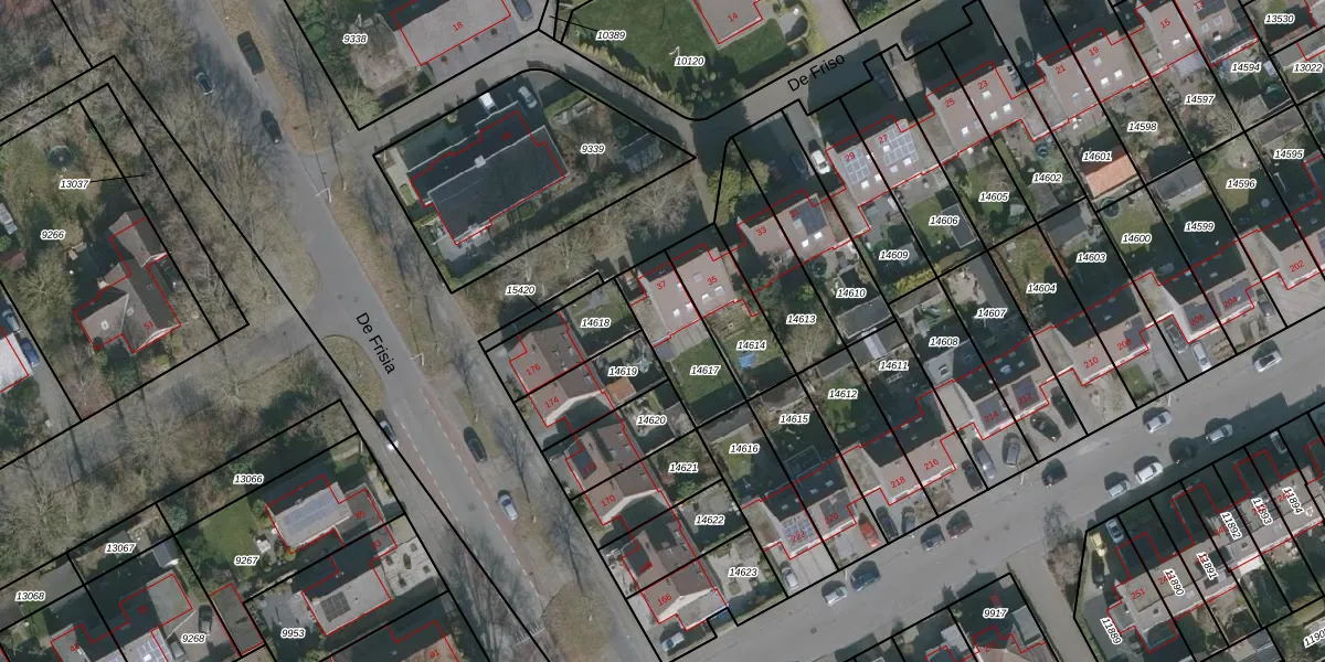 Het perceel waarop De Friso 37 staat heeft een oppervlakte van 227 m². Dit is een middelgroot perceel. De perceeloppervlakte wordt geregistreerd door het Kadaster. Gedetailleerde informatie over de maten van dit perceel kunt u vinden in het rapport Kadastrale kaart met maatvoering van De Friso 37.