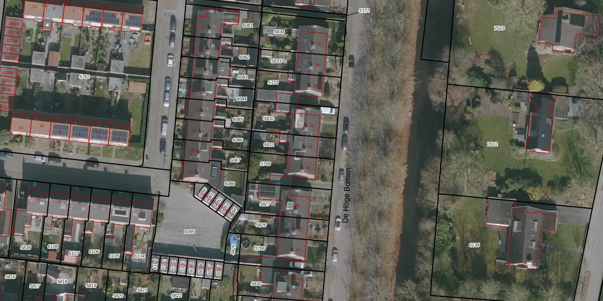 Het perceel waarop De Hoge Bomen 34 staat heeft een oppervlakte van 198 m². Dit is een middelgroot perceel. De perceeloppervlakte wordt geregistreerd door het Kadaster. Gedetailleerde informatie over de maten van dit perceel kunt u vinden in het rapport Kadastrale kaart met maatvoering van De Hoge Bomen 34.